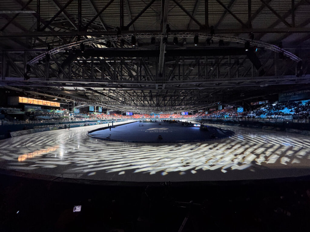 The atmosphere inside the stadium is incredible. The scale, the lighting on the rink, and the energy from the crowd make it feel like more than just a sports event. People from all over the world are here, waving flags and cheering together. Even with different languages and cultures, the excitement is shared.